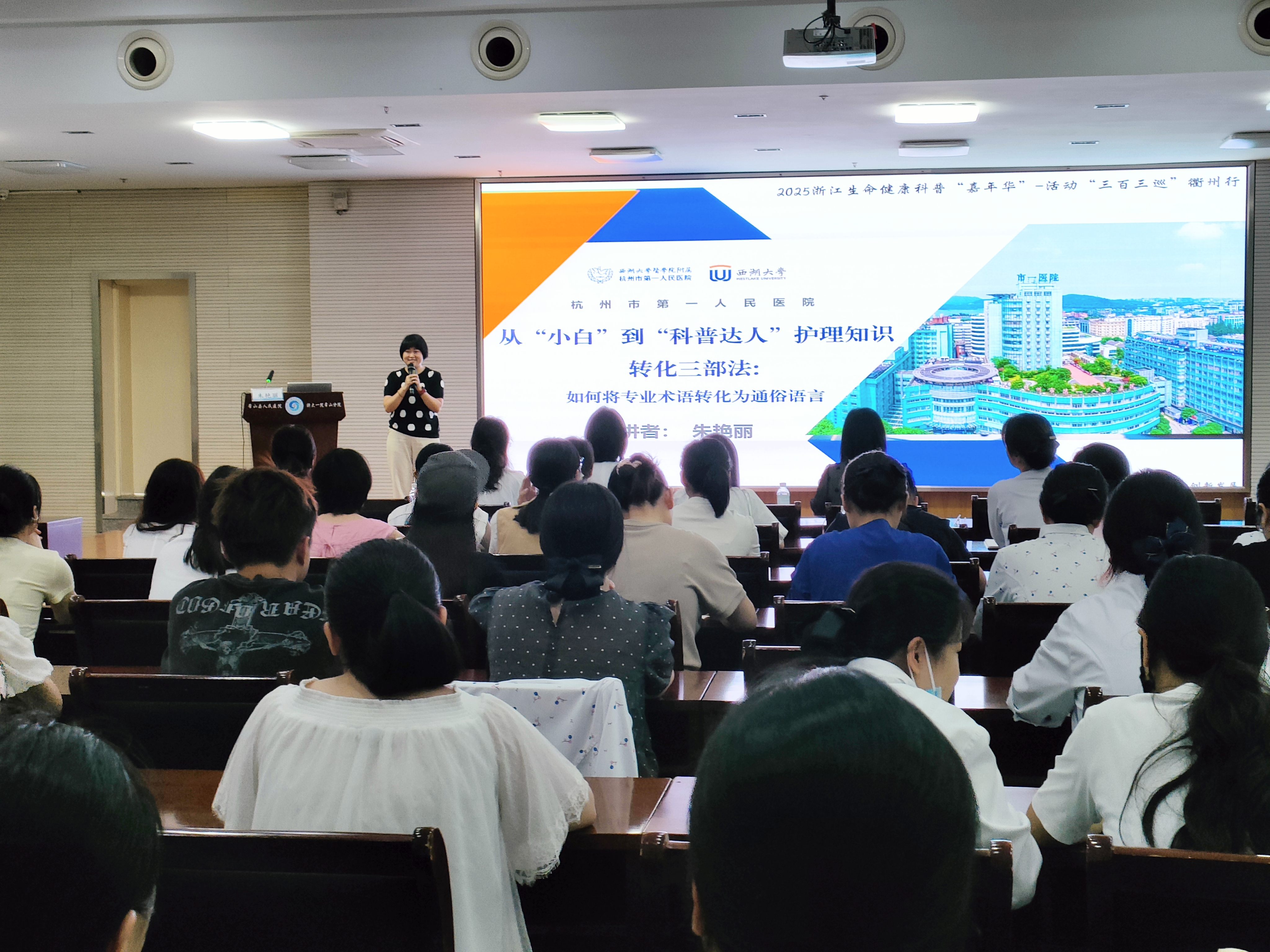 作为 2025 浙江生命健康科普 “嘉年华” 核心活动之一,联合体 “三百三巡” 衢州行于 9 月 14 日(周日)上午在衢州全域区县同步启动。常山县人民医院作为协办单位,荣幸邀请到浙江省护理学会陈雪妮老师与杭州市第一人民医院朱艳丽护士长莅临指导,为院内护理骨干开展 “护理知识转化” 专题培训,切实为基层护理团队注入健康科普转化与传播新动能。